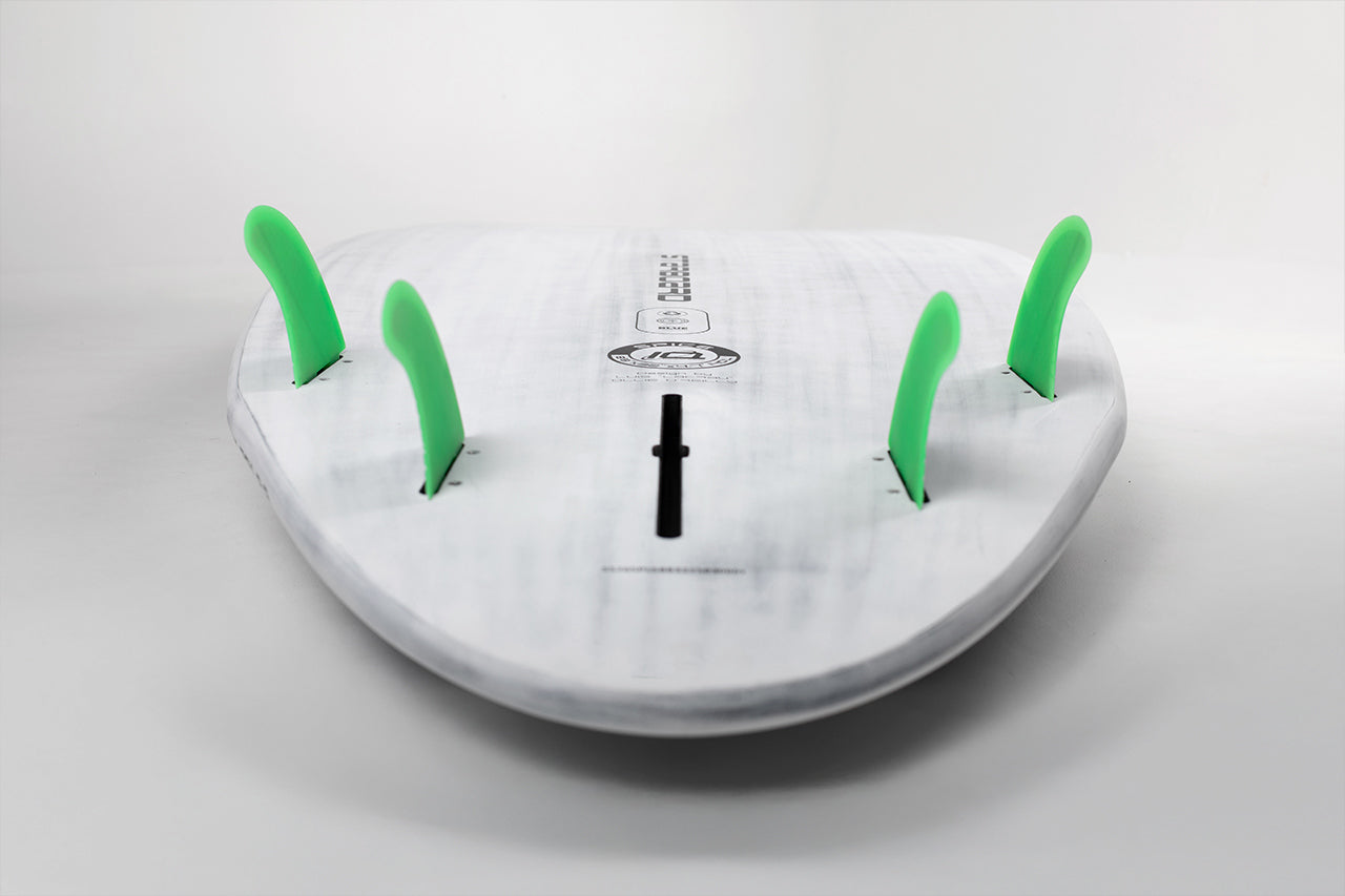 Allows for 4+1 and 2+1 fin setups. Choose based on your riding style and wave conditions. Updated fin angles offer more front splay for maneuverability and less rear angle for drive.