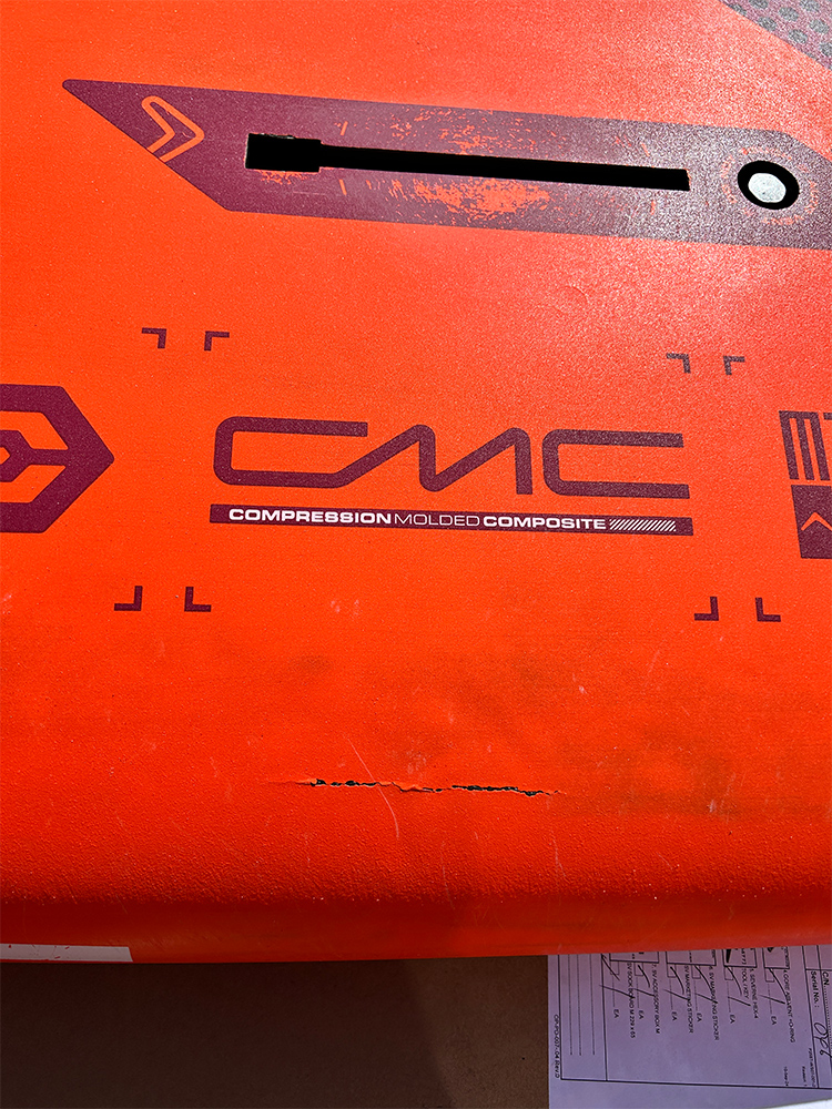 All the marks on this board are all just paint scratches/chips. We have looked over the whole board and none of the paint chipped areas are soft. There are no soft spots on the board.