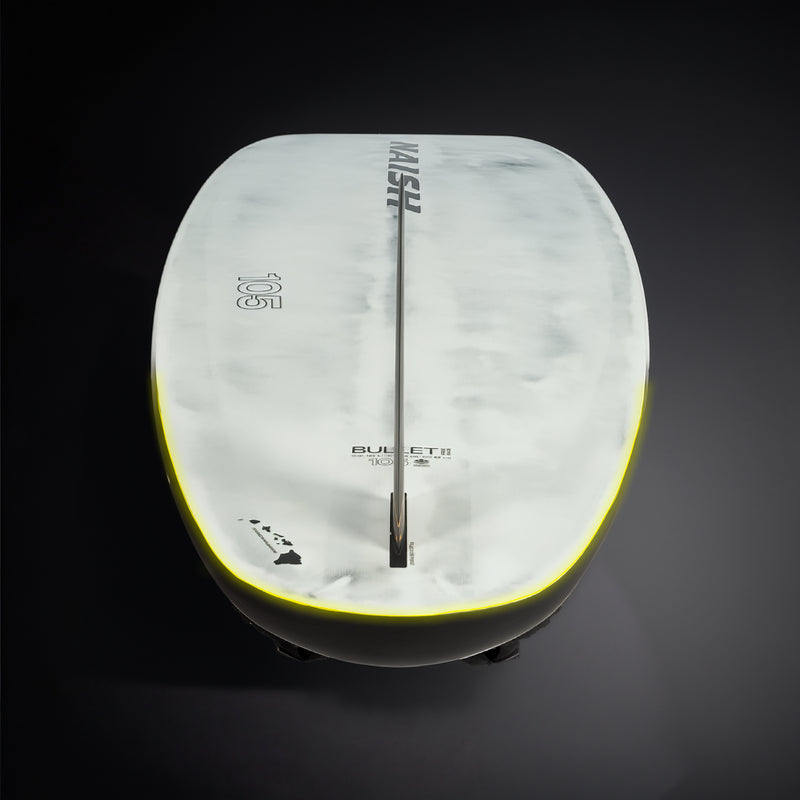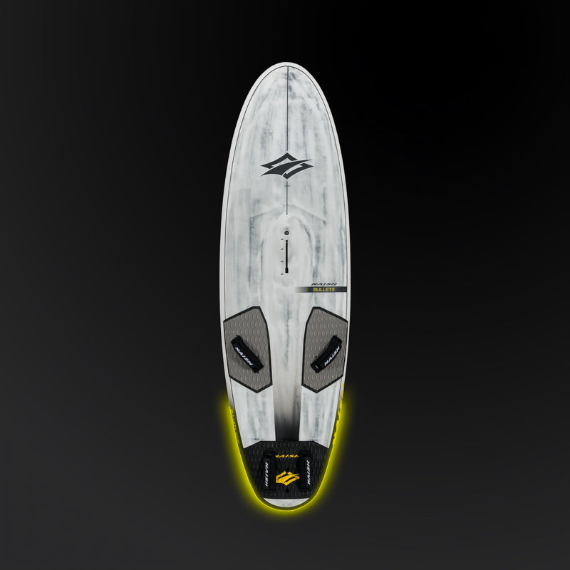 We added a touch more width and volume in the tail. You plane earlier, carry speed through transitions, and jibe with less effort, while keeping the top-end speed the Bullet is known for.
