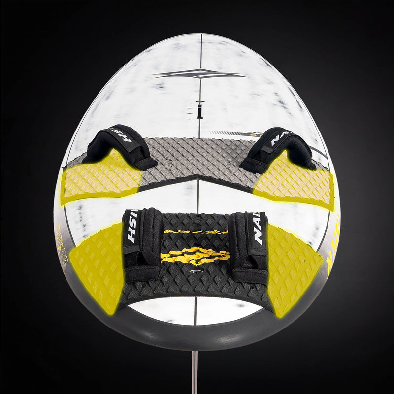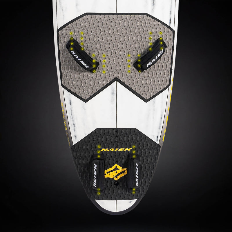 Multiple footstrap insert options let you tune the ride. Outboard positions give maximum speed and leverage, inboard positions give relaxed cruising and easier progression