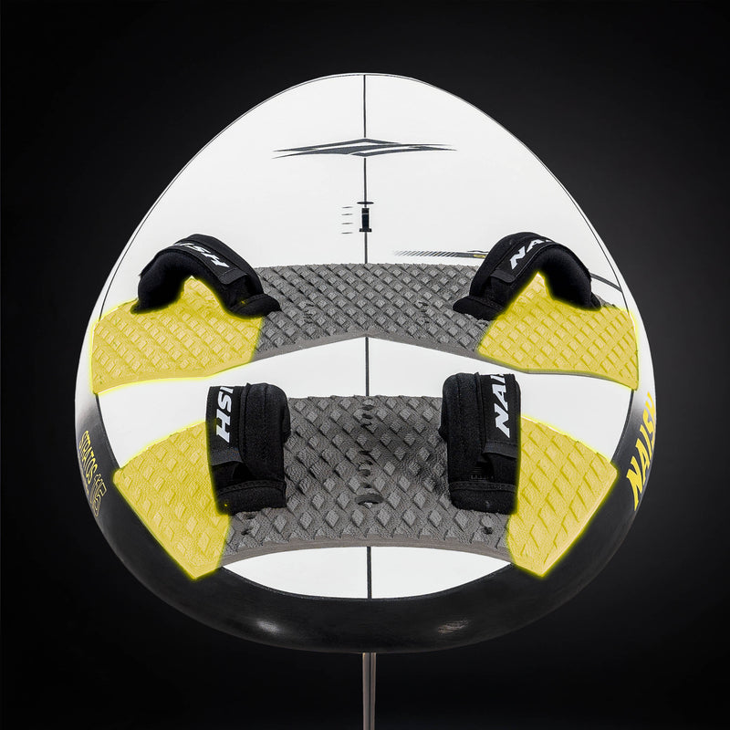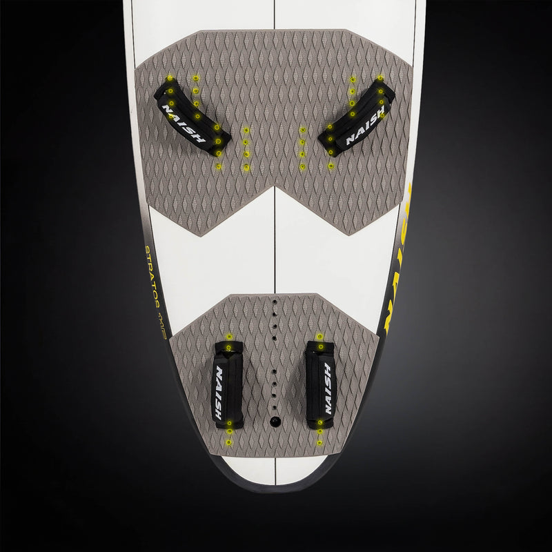 Multiple footstrap insert options let you tune the ride. Outboard positions give maximum speed and leverage, inboard positions give relaxed cruising and easier progression